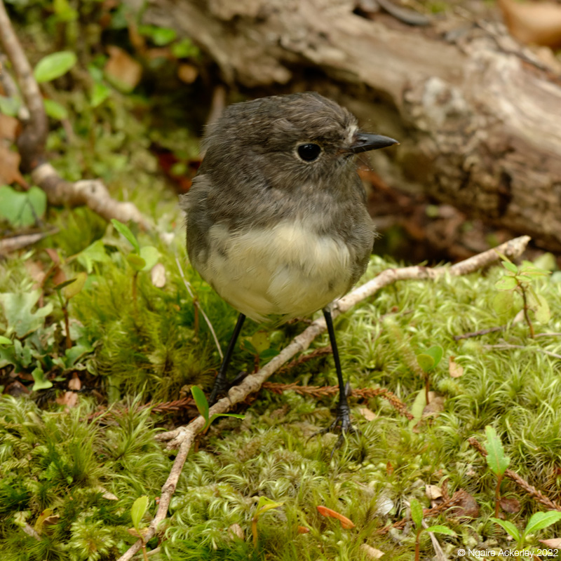 We saw many of them. Every few meters a Stewart Island Robin would greet us, following and bouncing around. They were probably the easiest to photograph.